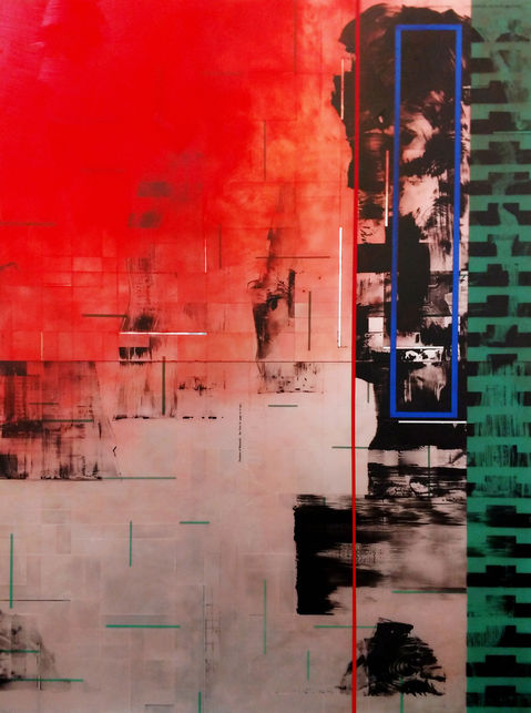 Processor was the first prospective body of work, open to many influences and instances. And that each piece would be an instance within this universe of overlapping fabric of technologies and visions. So, pulling from the Component works, I still had these pieces of mirrored plexi and a friend was sandblasting ceramics and one day I went by him with a piece of plexi with paint, and we sandblasted it. And the whole work of processor was born in that moment of production.