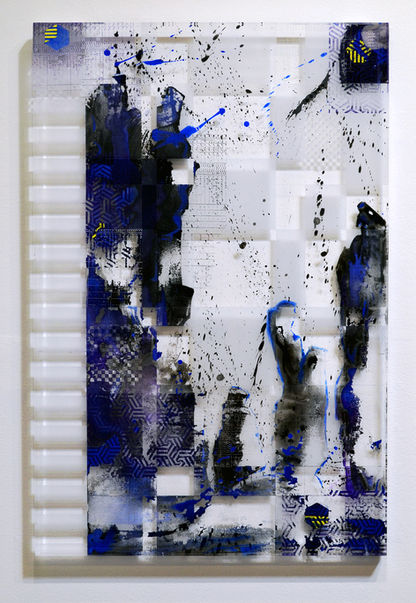 ... During Processor, 1-inch clear plexiglass was introduced. Instantly, its photo-lithographic qualities and process became a cypher and guide for making paintings. I realized that I could sandblast the front, back and sides of it and because of those sides, and if I set it on the wall, there was layered refractions.